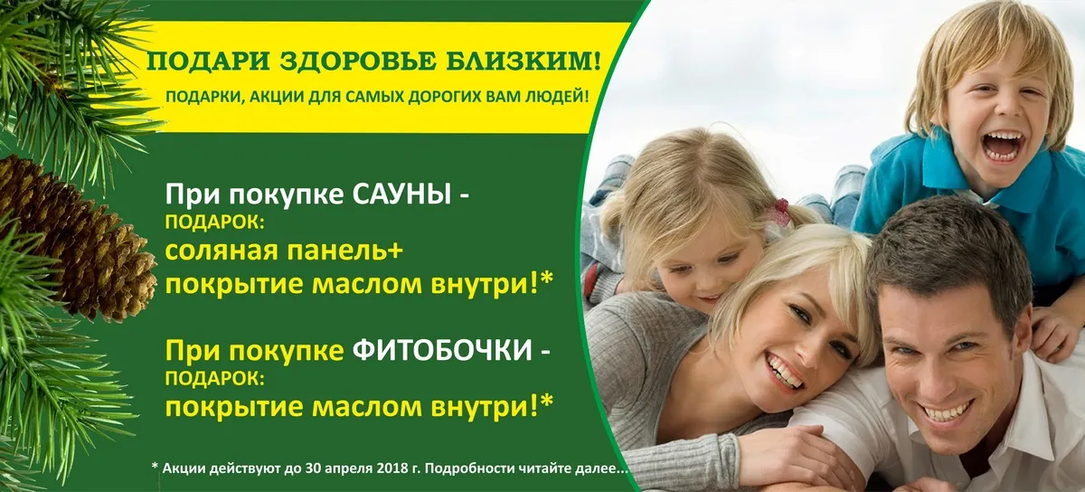 - Приобретая инфракрасную сауну с керамическими излучателями, Вы получаете в подарок соляную панель*+покрытие маслом внутри**;