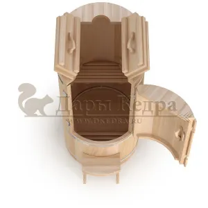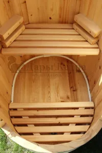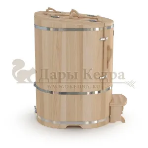 Овальная фитобочка из кедра - это мини парная, которую можно использовать не только в спа-салонах, но и дома. Овальная модель более просторна и удобна в использовании. Толщина стенок составляет 25 мм. Верхний скос делает положение головы более комфортным и улучшает обзор. Она оборудована откидными створками, дверцей и отверстием для головы. Во время парения человек сидит внутри кедровой бочки, а голова находится снаружи. Благодаря этому исключается возможность перегрева. Подлокотники из кедра, встроенные ручки на створках и двери делают эксплуатацию более удобной.
